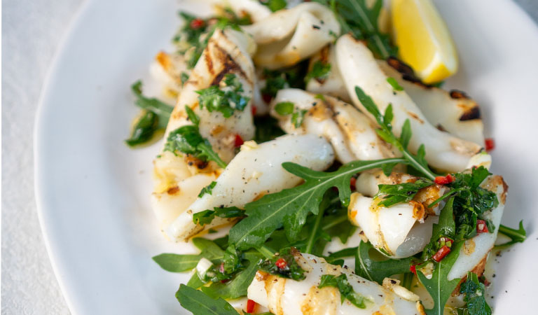 This light and delicious meal is perfect for lunch or dinner. The parsley, chilli, rocket and squid bring a vibrant touch to the dinner table whilst the lemon juice adds a refreshing zest to the finished recipe. You can even serve as a starter if you’re having guests over.
